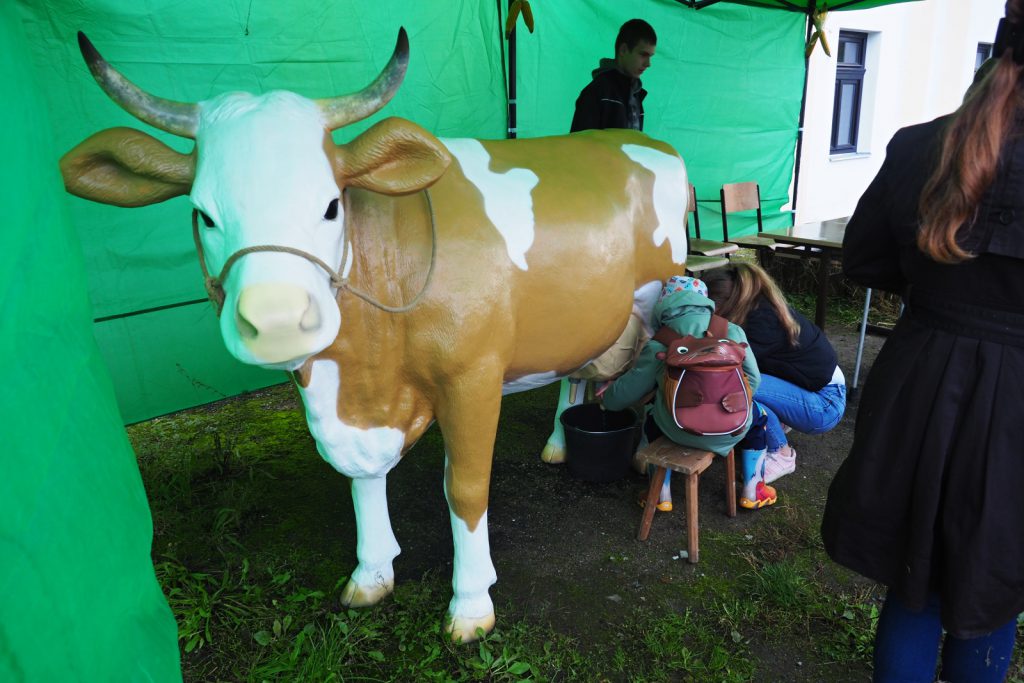V horní části areálu školního statku, v části chovu skotu, zaujala návštěvníky především malá telátka, ale mohli se podávat i na nového dojícího robota, nebo ukázku úpravy a ošetření paznehtů dojnic.